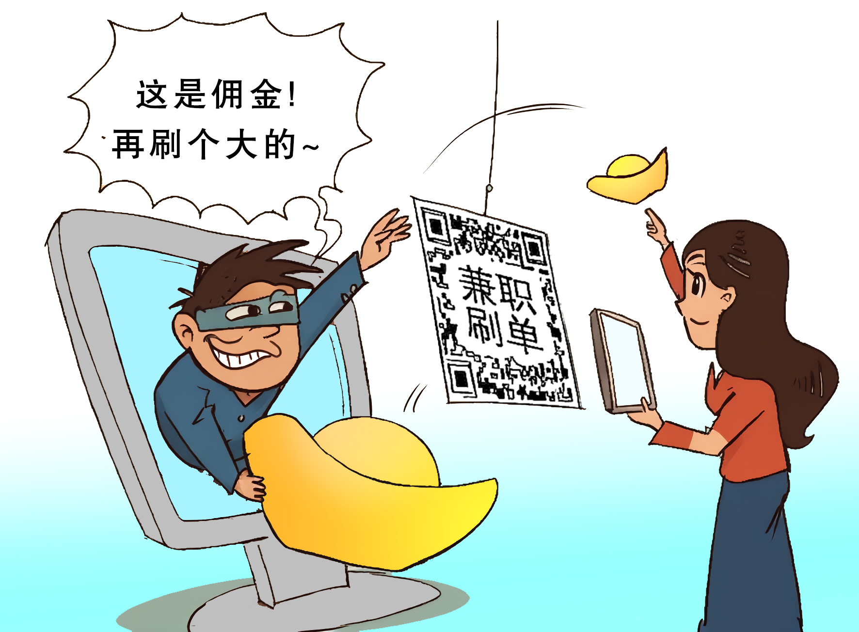 生活中,诈骗分子往往以兼职刷单为名,先以小额返利为诱饵,诱导受害人投入大量资金后,再以各种理由拒绝支付刷单本金从而骗取刷单人员钱款。大家在看到“点赞”“冲销量”等网络兼职广告时,请务必提高警惕,切莫落入诈骗分子的陷阱。(高虎 刘琪)